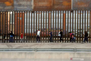 Sejumlah imigran dari Amerika Tengah berjalan di sepanjang pagar pembatas usai menyeberangi the Rio Bravo menuju El Paso di Texas, Amerika Serikat secara ilegal untuk meminta suaka seperti yang terlihat dari Ciudad Juarez, Meksiko, Kamis (4/4/2019) waktu setempat. ANTARA FOTO/REUTERS/Jose Luis Gonzales/wsj.