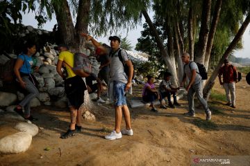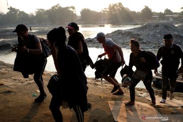 Sejumlah imigran dari Kuba beristirahat sejenak untuk naik rakit melintasi sungai Suchiate dari Tecun Uman, Guatemala ke Ciudad Hidalgo, Meksiko, dalam perjalanannya ke Amerika Serikat, Senin (8/4/2019). ANTARA FOTO/REUTERS/Jose Cabezas/pras.