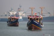 Dua Kapal Motor (KM) Banawa Nusantara bersiap sandar di Dermaga Jamrud Utara, Pelabuhan Tanjung Perak, Surabaya, Jawa Timur, Senin (15/4/2019). Kementerian Perhubungan menyerahkan 12 unit kapal pelayaran rakyat ke sejumlah daerah dengan tujuan untuk mempermudah konektivitas penumpang dan barang meningkatkan efisiensi. ANTARA FOTO/Didik Suhartono/hp.