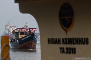 Kapal Motor (KM) Banawa Nusantara bersiap sandar di Dermaga Jamrud Utara, Pelabuhan Tanjung Perak, Surabaya, Jawa Timur, Senin (15/4/2019). Kementerian Perhubungan menyerahkan 12 unit kapal pelayaran rakyat ke sejumlah daerah dengan tujuan untuk mempermudah konektivitas penumpang dan barang meningkatkan efisiensi. ANTARA FOTO/Didik Suhartono/hp.