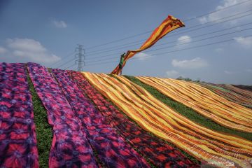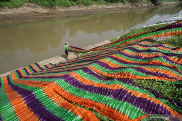 Perajin menjemur kain pantai di desa Laban, Mojolaban, Sukoharjo, Jawa Tengah, Selasa (23/4/2019). Kementerian Perindustrian di tahun 2019 akan meningkatkan dana anggaran khusus (DAK) untuk revitalisasi sektor industri kecil dan menengah (IKM) sebesar Rp177,8 milliar atau meningkat 23 persen dari tahun 2018 sebesar Rp73,8 milliar. ANTARA FOTO/Mohammad Ayudha/wsj.
