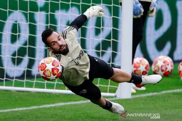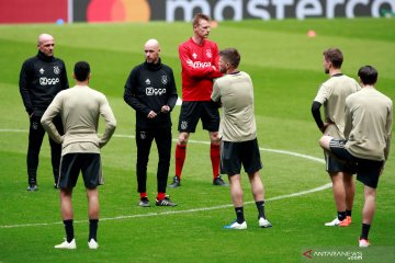 Pemain Ajax Amsterdam berlatih jelang semifinal Liga Champions di stadion Tottenham Hotspur, London, Selasa (30//4/2019). ANTARA FOTO/Action Images via Reuters/Andrew Couldridge/pras.