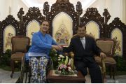 Wakil Presiden Jusuf Kalla (kanan) menerima kunjungan resmi Wakil Presiden Argentina Gabriela Michetti di Istana Wakil Presiden Jakarta, Selasa (7/5/2019). Pertemuan tersebut untuk meningkatkan hubungan bilateral serta membahas perdagangan dan investasi kedua negara. ANTARA FOTO/Wahyu Putro A/hp.