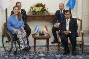 Wakil Presiden Jusuf Kalla (kanan) melakukan pertemuan bilateral dengan Wakil Presiden Argentina Gabriela Michetti (kiri) di Istana Wakil Presiden Jakarta, Selasa (7/5/2019). Pertemuan tersebut untuk meningkatkan hubungan bilateral serta membahas perdagangan dan investasi kedua negara. ANTARA FOTO/Wahyu Putro A/hp.