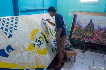 Perajin memproduksi batik realis di Tamakun Art, Pekalongan, Jawa Tengah, Sabtu (22/5/2019). Menurut perajin setempat, pembuatan batik yang mengkombinasikan teknik batik tulis dan lukis tersebut mengalami peningkatan permintaan saat Ramadhan sebanyak 20-30 persen dibandingkan hari biasa, dengan penjualan antara Rp250.000-Rp3 juta per lembar kain. ANTARA FOTO/Harviyan Perdana Putra/hp.