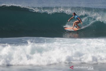 Peselancar asal Amerika Serikat Courtney Conlogue beraksi saat babak 16 besar kategori wanita kejuaraan selancar dunia bertajuk "Corona Bali Protected" di Pantai Keramas, Gianyar, Bali, Kamis (16/5/2019). Kejuaraan yang merupakan seri ketiga Liga Selancar Dunia atau World Surf League (WSL) Champions Tour 2019 tersebut diikuti oleh 56 peselancar dunia dari berbagai negara seperti Australia, Amerika Serikat, Brazil, Prancis dan Hawaii. ANTARA FOTO/Fikri Yusuf/wsj.