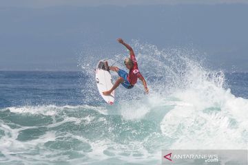 Peselancar asal Australia Wade Carmichael beraksi saat babak 16 besar kategori pria kejuaraan selancar dunia "Corona Bali Protected" di Pantai Keramas, Gianyar, Bali, Senin (20/5/2019). Wade Carmichael lolos ke babak perempat final kejuaraan yang merupakan seri ketiga Liga Selancar Dunia atau World Surf League (WSL) Champions Tour 2019 tersebut usai mengalahkan peselancar asal Perancis Joan Duru. ANTARA FOTO/Fikri Yusuf/hp.
