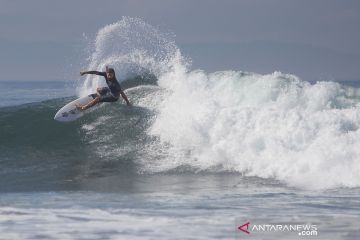 Peselancar asal Jepang Kanoa Igarashi beraksi saat babak 16 besar kategori pria kejuaraan selancar dunia "Corona Bali Protected" di Pantai Keramas, Gianyar, Bali, Senin (20/5/2019). Kanoa Igarashi lolos ke babak perempat final kejuaraan yang merupakan seri ketiga Liga Selancar Dunia atau World Surf League (WSL) Champions Tour 2019 tersebut usai mengalahkan peselancar asal Brazil Jesse Mendes. ANTARA FOTO/Fikri Yusuf/hp.