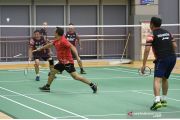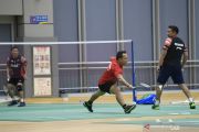 Sejumlah pelatih bermain bulu tangkis seusai melatih pebulu tangkis Tim Piala Sudirman Indonesia di Nanning, China, Kamis (23/5/2019). Indonesia akan melawan Taiwan pada Perempat final Sudirman 2019 pada Jumat (24/5/2019). ANTARA FOTO/Wahyu Putro A/hp.