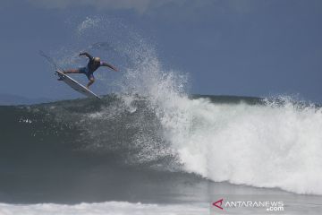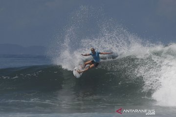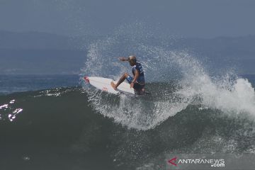 Peselancar asal Jepang Kanoa Igarashi beraksi saat babak Final kategori pria kejuaraan selancar dunia "Corona Bali Protected" di Pantai Keramas, Gianyar, Bali, Sabtu (25/5/2019). ANTARA FOTO/Fikri Yusuf/hp/pri