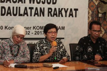 Mantan Komisioner Komnas Ham Roichatul Aswindag (kiri), Siti Noor Laila (tengah), Ifdhal Kasim (kanan) saat memberikan keterangan kepada wartawan mengenai Pemilu sebagai kedaulatan rakyat di Jakarta, Sabtu (25/5/2019). Mantan Komisioner Komnas HAM mendukung upaya pemerintah melakukan investigasi menyeluruh secara tuntas siapa dalang kejadian kerusuhan 21 hingga 22 Mei 2019. ANTARA FOTO/Reno Esnir/hp.