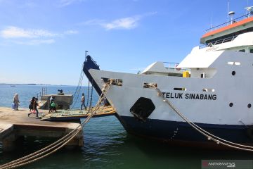 Sejumlah penumpang bersiap memasuki Kapal Motor Penyeberangan (KMP) Teluk Sinabang di Pelabuhan Penyeberangan Meulaboh-Sinabang Desa Gampong Teungoh, Samatiga, Aceh Barat, Aceh, Minggu (26/5/2019). Sebagian pemudik memilih mudik lebih awal untuk menghindari penumpukan penumpang pada puncak arus mudik lebaran 2019. ANTARA FOTO/Syifa Yulinnas/aww.