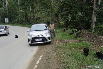 Kera hitam berkeliaran di jalur mudik "Kebun Kopi"