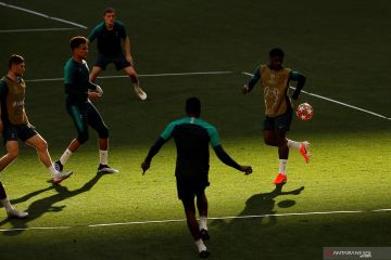 Pemain Tottenham Hotspur mengikuti sesi latihan di Madrid, Spanyol, Jumat (31/5/2019). ANTARA FOTO/REUTERS/Susana Vera/ foc.