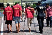 Polisi menggiring sejumlah tersangka bandar narkoba usai gelar kasus pengungkapan kasus narkoba jaringan internasional di Mapolda Sumut, Medan, Sumatera Utara, Kamis (13/6/2019). Polda Sumut berhasil mengamankan 15 orang tersangka bandar narkotika jaringan internasional Malaysia-Indonesia dengan barang bukti 50 kilogram sabu, 170 kilogram ganja dan 15.846 butir pil ekstasi. ANTARA FOTO/Septianda Perdana/wsj.