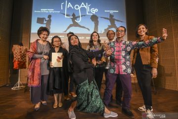 Program Director Bakti Budaya Djarum Foundation Renitasari Adrian (kanan) berfoto bersama Presiden Direktur Ciputra Artpreneur Rina Ciputra Sastrawinata (kiri), Vice Chairwoman Martha Tilaar Group Wulan Tilaar (keempat kiri), Ketua Yayasan Bumi Purnati & Direktur Artistik I La Galigo Restu Kusumaningrum (kedua kiri), Perwakilan Pemusik I La Galigo Danis Sugiyanto (ketiga kanan), Coach Movement I La Galago Satriani (ketiga kiri dan Kristiono Soewardjo (kedua kanan) usia jumpa pers jelang pertunjukan karya musik-teater kelas dunia I La Galigo di Galeri Indonesia Kaya, Jakarta, Kamis (13/6/2019). I La Galigo merupakan pertunjukan musik teater yang terinfiprasi dari wiracarita mitos penciptaan suku bugis tersebut akan berlangsung di Ciputra Artpreneur Theater pada 3, 5, 6 dan 7 Juli 2019. ANTARA FOTO/Muhammad Adimaja/wsj.
