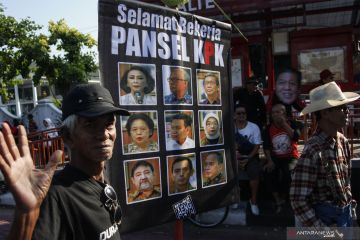 Warga mengusung poster bertuliskan Selamat Bekerja Pansel KPK pada Hari Bebas Kendaraan Bermotor (HBKB) di Solo, Jawa Tengah, Minggu (16/6/2019). Aksi tersebut sebagai bentuk dukungan dan harapan agar Panitia Seleksi (Pansel) pimpinan Komisi Pemberantasan Korupsi (KPK) yang dibentuk pemerintah dapat transparan dalam menjalankan tugasnya. ANTARA FOTO/Maulana Surya/wsj.