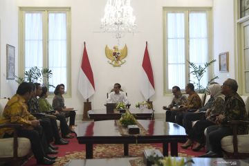 Presiden Joko Widodo (kanan) menerima Ketua Panitia Seleksi calon pimpinan Komisi Pemberantasan Korupsi (KPK) periode 2019-2023 Yenti Ganarsih (keempat kiri) bersama anggota di Istana Merdeka, Jakarta, Senin (17/6/19). Presiden berharap Pansel KPK menghasilkan calon pimpinan KPK dengan kemampuan managerial dan menguasai dinamika pemberantasan korupsi. ANTARA FOTO/Puspa Perwitasari/pras.
