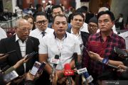 Kuasa hukum Tim Kampanye Nasional (TKN) pasangan Calon Presiden dan Calon Wakil Presiden nomor urut 01 Taufik Basari (tengah), Yusril Ihza Mahendra (kanan) dan I Wayan Sudirta (kiri) menjawab pertanyaan wartawan seusai menyerahkan berkas materi jawaban di Gedung Mahkamah Konstitusi di Jakarta, Senin (17/6/2019). Tim kuasa hukum TKN selaku pihak terkait menyerahkan berkas materi jawaban terhadap pemohon pada sidang gugatan Perselisihan Hasil Pemilihan Umum (PHPU) sengketa Pilpres 2019 di MK. ANTARA FOTO/Hafidz Mubarak A/aww.