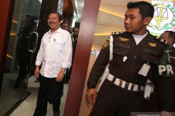 Mantan Wali Kota Surabaya Bambang Dwi Hartono (tengah) berjalan keluar Gedung Kejaksaan Tinggi (Kejati) Jawa Timur, di Surabaya, Selasa (25/6/2019). Kejati Jatim memeriksa Bambang Dwi Hartono sebagai saksi terkait kasus dugaan korupsi aset Pemkot Surabaya yang dilakukan oknum pengurus Yayasan Kas Pembangunan (YKP) dan PT Yekape. ANTARA FOTO/Didik Suhartono/pras.