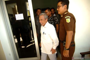 Tersangka Nurul Qomar (kiri) berjalan keluar ruangan usai menjalani pemeriksaan di Kejaksaan Negeri Brebes, Jawa Tengah, Rabu (26/6/2019). Kejaksaan Negeri Brebes tidak melakukan penahanan terhadap tersangka Nurul Qomar atas dugaan pemalsuan surat keterangan lulus pascasarjana S2 dan doktoral S3 untuk mendaftarkan diri dalam seleksi Rektor Universitas Muhadi Setia Budi Brebes pada tahun 2017, karena telah ditangguhkan penahan oleh penyidik Polres Brebes dengan alasan Qomar menderita penyakit asma akut. Namun proses hukum tetap berjalan dengan melimpahkan kasus tersebut ke Pengadilan Negeri Brebes. ANTARA FOTO/Oky Lukmansyah/ama.