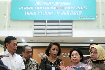Panitia Seleksi Calon Pimpinan Komisi Pemberantasan Korupsi yakni Harkristuti Harkrisnowo (kedua kanan), dan Diani Sadiawati (kanan) memberikan keterangan di gedung Kementerian Sekretariat Negara, Jakarta, Kamis (4/7/2019). ANTARA/Bayu Prasetyo/am.