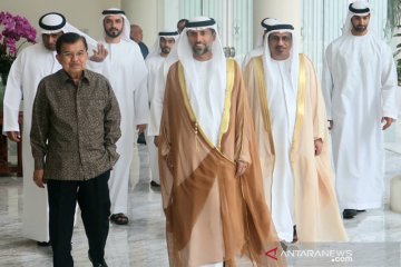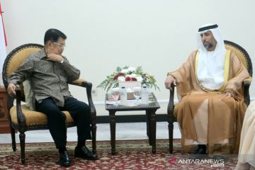 Wakil Presiden Jusuf Kalla bersama Menteri Energi dan Industri Uni Emirat Arab, Suhail Mohamed Al Mazrouei, di Kantor Wakil Presiden, Jakarta pada Jumat (5/7/2019). ANTARA/Bayu Prasetyo/aa