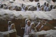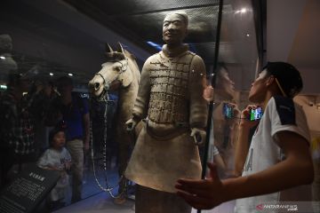 Kondisi patung prajurit beserta kuda di Museum Prajurit Terakota di Xi'an, Shaanxi, China, Jumat (5/7/2019). Pada hari libur, kunjungan wisatawan ke lokasi tersebut mencapai sedikitnya 90 ribu pengunjung tiap harinya dan rencananya akan ada pembatasan jumlah kunjungan ke objek wisata itu. ANTARA FOTO/Zabur Karuru/foc.