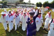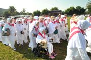 Sejumlah jemaah calon haji Kota Bogor melakukan tawaf saat praktik manasik haji massal di Lapangan Sukasari, Kota Bogor, Jawa Barat, Sabtu (6/7/2019). Kota Bogor mendapatkan kuota sebanyak 984 jemaah calon haji yang terbagi menjadi empat kloter pemberangkatan. ANTARA FOTO/Arif Firmansyah/foc.