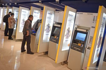 Nasabah bertransaksi di anjungan tunai mandiri (ATM) Bank Mandiri, Jakarta, Senin (8/7/2019). Bank Indonesia mencatat pembayaran nontunai secara konsisten terus meningkat hingga awal tahun 2019, yakni melalui penggunaan kartu ATM debit, kartu kredit, dan uang elektronik tumbuh hingga 15,3 persen (year-on-year), lebih tinggi ketimbang pertumbuhan pembayaran tunai yang hanya sebesar 7,4 persen yoy. ANTARA FOTO/M Risyal Hidayat/pras.