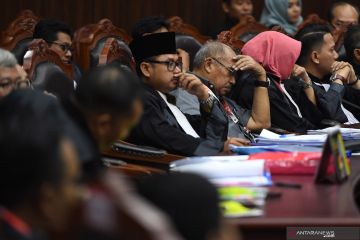 Suasana sidang perdana perselisihan hasil pemilihan umum (PHPU) Pileg 2019 untuk DPR dan DPRD Jawa Timur di Mahkamah Konstitusi, Jakarta, Selasa (9/7/2019). Sidang perdana tersebut beragenda pemeriksaan pendahuluan atau memeriksa kelengkapan dan kejelasan materi permohonan serta pengesahan alat bukti. ANTARA FOTO/Akbar Nugroho Gumay/pras.
