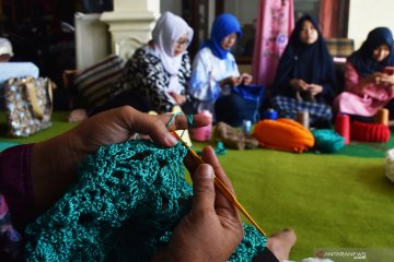 Sejumlah orang mengikuti pelatihan merajut di Kota Madiun, Jawa Timur, Sabtu (20/7/2019). Pelatihan merajut yang diikuti 40 orang selama enam hari dan difasilitasi Pemkot Madiun tersebut untuk membekali keterampikan merajut bagi kaum perempuan. ANTARA FOTO/Siswowidodo/hp.