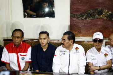 Anak dari pelawak Nunung Srimulat, Bagus Permadi (kedua kiri) didampingi Ketua Gerakan Peduli Anti Narkoba (GPAN), Brigjen Pol Siswandi (kedua kanan), pelawak Tarzan (kiri) dan Tessy (kanan) memberikan keterangan pers terkait kasus narkoba pelawak Nunung di Jakarta, Sabtu (20/7/2019). Pelawak Nunung Srimulat ditangkap tim dari Subdit 1 Ditresnarkoba Polda Metro Jaya pada Jumat (19/7) karena kasus narkoba. ANTARA FOTO/Rivan Awal Lingga/hp.