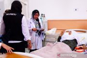 Sejumlah petugas kesehatan memberi perawatan kepada seorang pasien calon haji di ruang rawat inap Rumah Sakit KKHI Mekkah, Arab Saudi, Minggu (21/7/2019). Kantor Kesehatan Haji Indonesia sudah merawat 15 jemaah calon haji yang sakit dengan 7 di antaranya telah diperbolehkan pulang. ANTARA/Hanni Sofia/aa
