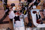 Sejumlah petugas kesehatan dan dokter memberi perawatan kepada seorang pasien calon haji yang menderita diabetes millitus di ruang rawat inap Rumah Sakit KKHI Mekkah, Arab Saudi, Minggu (21/7/2019). Kantor Kesehatan Haji Indonesia sudah merawat 15 jemaah calon haji yang sakit dengan 7 di antaranya telah diperbolehkan pulang. ANTARA/Hanni Sofia/aa
