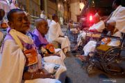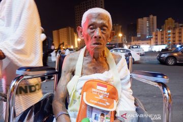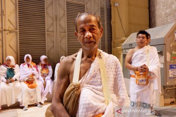 Seorang jamaah lanjut usia (lansia) dari embarkasi Makassar bersiap melakukan umroh wajib sesaat setelah tiba di Kota Mekkah, Arab Saudi, Senin malam menjelang Selasa dinihari (22/7/2019). Calon haji lansia mendominasi yang jumlahnya mencapai 63 persen dari total 231.000 jamaah asal Indonesia. ANTARA/Hanni Sofia/aa