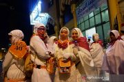 Seorang petugas mengarahkan jalan bagi jamaah lanjut usia (lansia) dari embarkasi Makassar yang bersiap melakukan umroh wajib saat tiba di Kota Mekkah, Arab Saudi, Senin malam menjelang Selasa dinihari (22/7/2019). Calon haji lansia mendominasi yang jumlahnya mencapai 63 persen dari total 231.000 jamaah asal Indonesia. ANTARA/Hanni Sofia/aa