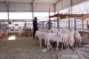 Transaksi pembelian hewan untuk alternatif pembayaran dam dilakukan di lapak pedagang kambing di Pasar Anam di Kilo Asyaro, Mekkah, Selasa (23/7/2019). Pasar Anam biasanya ramai didatangi jamaah saat musim haji sebagai tempat alternatif untuk membayar dam, pasar ini banyak didatangi kaum dhuafa yang berharap mendapatkan bagian rezeki termasuk daging hewan dam dari jemaah. ANTARA/Hanni Sofia/pri