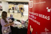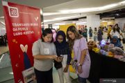 Pengunjung mengamati merchandise yang ditawarkan pada acara gathering pertama BTS ARMY Indonesia di Jakarta, Sabtu (27/7/2019). Dalam acara bertajuk YOUNIVERSE tersebut DOKU menjangkau komunitas K-pop dengan memperkenalkan kemudahan penggunaan Fintech untuk penjualan tiket gathering dan pembelian merchandise menggunakan pembayaran nontunai. ANTARA FOTO/Dhemas Reviyanto/hp.