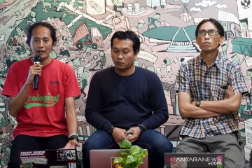Manager Kampanye Energi dan Perkotaan Wahana Lingkungan Hidung Indonesia (Walhi) Dwi Sawung (kanan), Direktur Eksekutif Walhi DKI Jakarta Tubagus Achmad Sholeh (tengah) dan Direktur Eksekutif Walhi Jawa Barat Meiki W Paendong (kanan) memberikan keterangan pers terkait pencemaran pantai Karawang akibat tumpahan minyak mentah milik PT Pertamina di Kantor Walhi nasional di Jakarta, Senin (29/7/2019). Berdasarkan citra satelit ESA sentinel 1, akibat tumpahan minyak mentah yang luasnya mencapai 45,37 kilometer persegi tersebut telah mencemari pantai Karawang. ANTARA/Fauzi/aa
