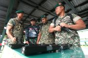 Direktur Jenderal Strategi Pertahanan Mayor Jenderal TNI Rizerius Eko Hadisancoko (kanan) Komandan Bataliyon Infantri Raider 613 Raja Alam Letkol Infantri Fardhin Wardana (kiri) melakukan pemeriksaan pasukan yang tergabung dalam Latihan bersama Indomalphi Land Exercise 2019 dilapangan Bataliyon Infantri Raider 613 Raja Alam, Tarakan, Kalimantan Utara, Senin (29/7/2019). Latihan bersama Indomalphi Land Exercise 2019 yang diikuti tiga negara yakni Indonesia, Malaysia dan Filipina tersebut bertujuan menjaga keamanan wilayah dari ancaman teroris di tiga negara tersebut terutama di wilayah perbatasan. ANTARA FOTO/Fachrurrozi/zk/hp.