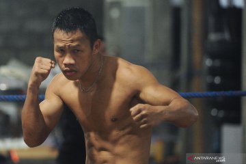 Petinju Indonesia Daud Yordan berpose usai melakukan latihan di Denpasar, Bali, Senin (29/7/2019). Petinju Daud Yordan terus melakukan persiapan fisik, teknik dan mental menjelang keberangkatannya ke Pattaya, Thailand untuk pertarungan bertajuk "WBC International Challenge Belt" melawan petinju tuan rumah Aekkawee Kaewmanee pada 4 Agustus mendatang. ANTARA FOTO/Fikri Yusuf/hp.
