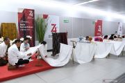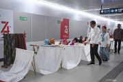 Presiden Joko Widodo (kedua kiri) bersama Ibu Negara Iriana Joko Widodo (ketiga kiri) mencanting batik motif Gurdo di kain sepanjang 74 meter saat menghadiri kegiatan Batik Kemerdekaan di Stasiun MRT Bundaran HI Jakarta, Kamis (1/8/2019). Kegiatan Batik Kemerdekaan diikuti 74 pembatik dari berbagai sentra kerajinan batik tersebut meruapakan rangkaian perayaan HUT ke-74 RI. ANTARA FOTO/Wahyu Putro A/hp.