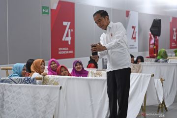 Presiden Joko Widodo berswafoto dengan sejumlah pembatik saat menghadiri kegiatan Batik Kemerdekaan di Stasiun MRT Bundaran HI Jakarta, Kamis (1/8/2019). Kegiatan Batik Kemerdekaan diikuti 74 pembatik dari berbagai sentra kerajinan batik tersebut meruapakan rangkaian perayaan HUT ke-74 RI. ANTARA FOTO/Wahyu Putro A/hp.