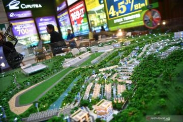 Pengunjung melintas di dekat maket hunian yang dipamerkan dalam Indonesia Properti Expo di Jakarta Convention Centre, Jakarta, Jumat (2/8/2019). Pameran industri properti tanah air tersebut berlangsung hingga 4 Agustus 2019. ANTARA FOTO/Sigid Kurniawan/hp.