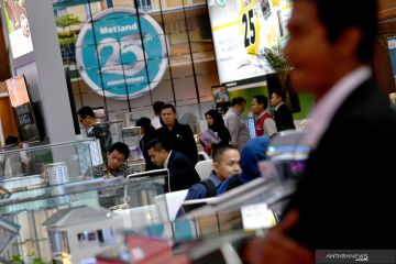 Pengunjung mendapat penjelasan soal hunian yang ditawarkan di pameran Indonesia Properti Expo di Jakarta Convention Centre, Jakarta, Jumat (2/8/2019). Pameran industri properti tanah air tersebut berlangsung hingga 4 Agustus 2019. ANTARA FOTO/Sigid Kurniawan/hp.