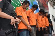 Polisi menunjukkan kelima tersangka pemasok narkoba yang menjerat komedian Tri Retno Prayudati alias Nunung saat rilis pengembangan perkara di Ditresnarkoba Polda Metro Jaya, Jakarta, Rabu (7/8/2019). Ditresnarkoba Polda Metro Jaya kembali menangkap lima tersangka DPO pemasok narkoba jenis sabu kepada komedian Nunung yakni S, FAP, DAW, DAV, dan MLP di tiga lokasi berbeda dan mengamankan total barang bukti sabu seberat 450 gram dan ganja kering seberat 12 gram. ANTARA FOTO/Indrianto Eko Suwarso/wsj.