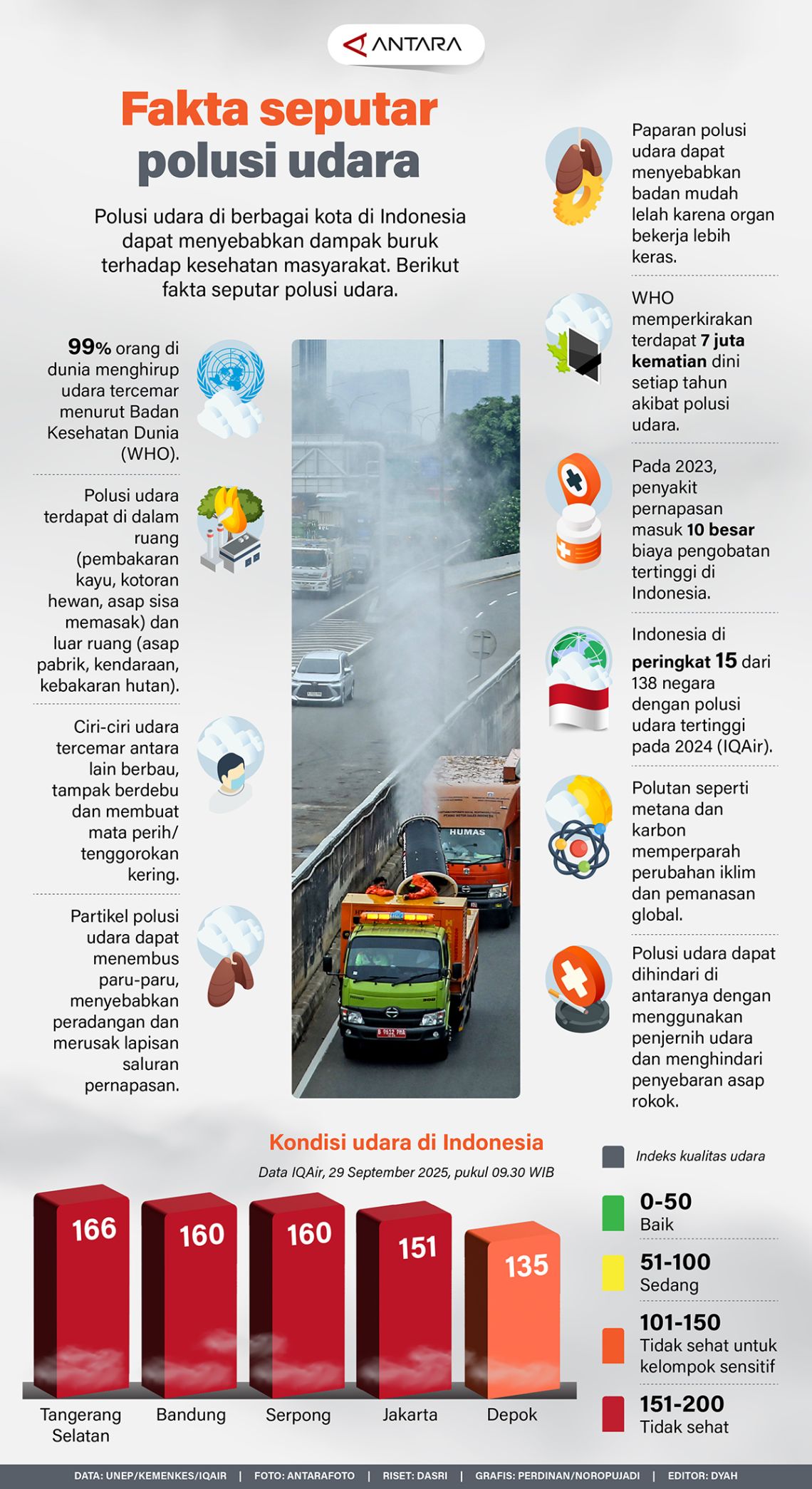 Polusi udara di berbagai kota di Indonesia dapat menyebabkan dampak buruk terhadap kesehatan masyarakat. Berikut fakta seputar polusi udara.