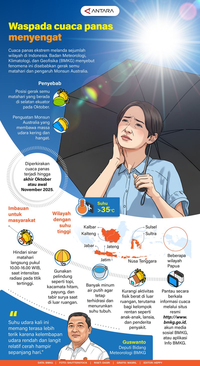 Cuaca panas ekstrem melanda sejumlah wilayah di Indonesia. Badan Meteorologi, Klimatologi, dan Geofisika (BMKG) menyebut fenomena ini disebabkan gerak semu matahari dan pengaruh Monsun Australia.