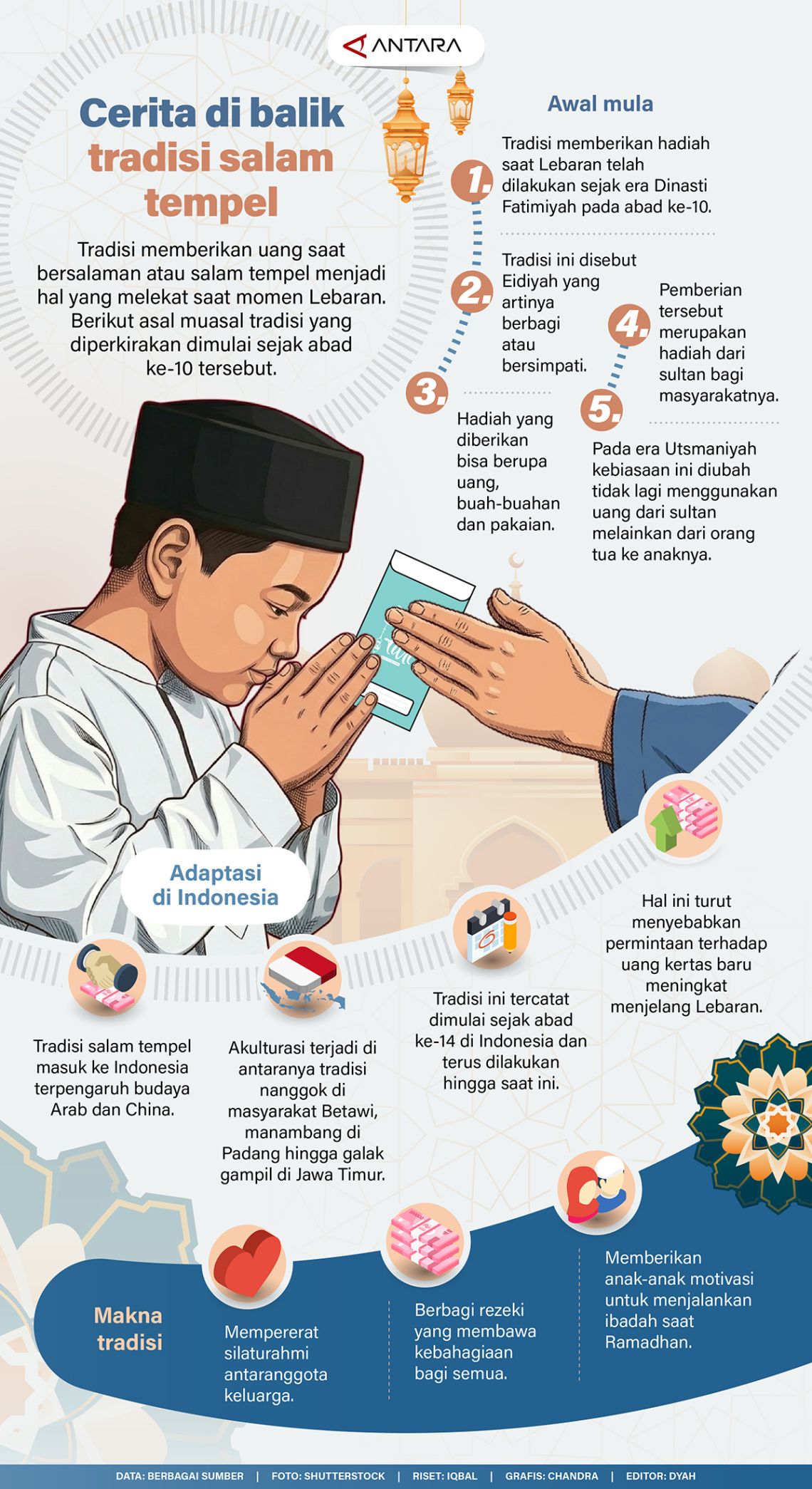 Tradisi memberikan uang saat bersalaman atau salam tempel menjadi hal yang melekat saat momen Lebaran. Berikut asal muasal tradisi yang diperkirakan dimulai sejak abad ke-10 tersebut.